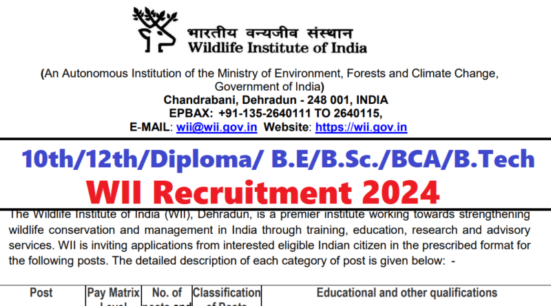 Wildlife Institute Of India Recruitment 2024, 10th, 12th, Diploma, Graduate Latest Vacancy 2024